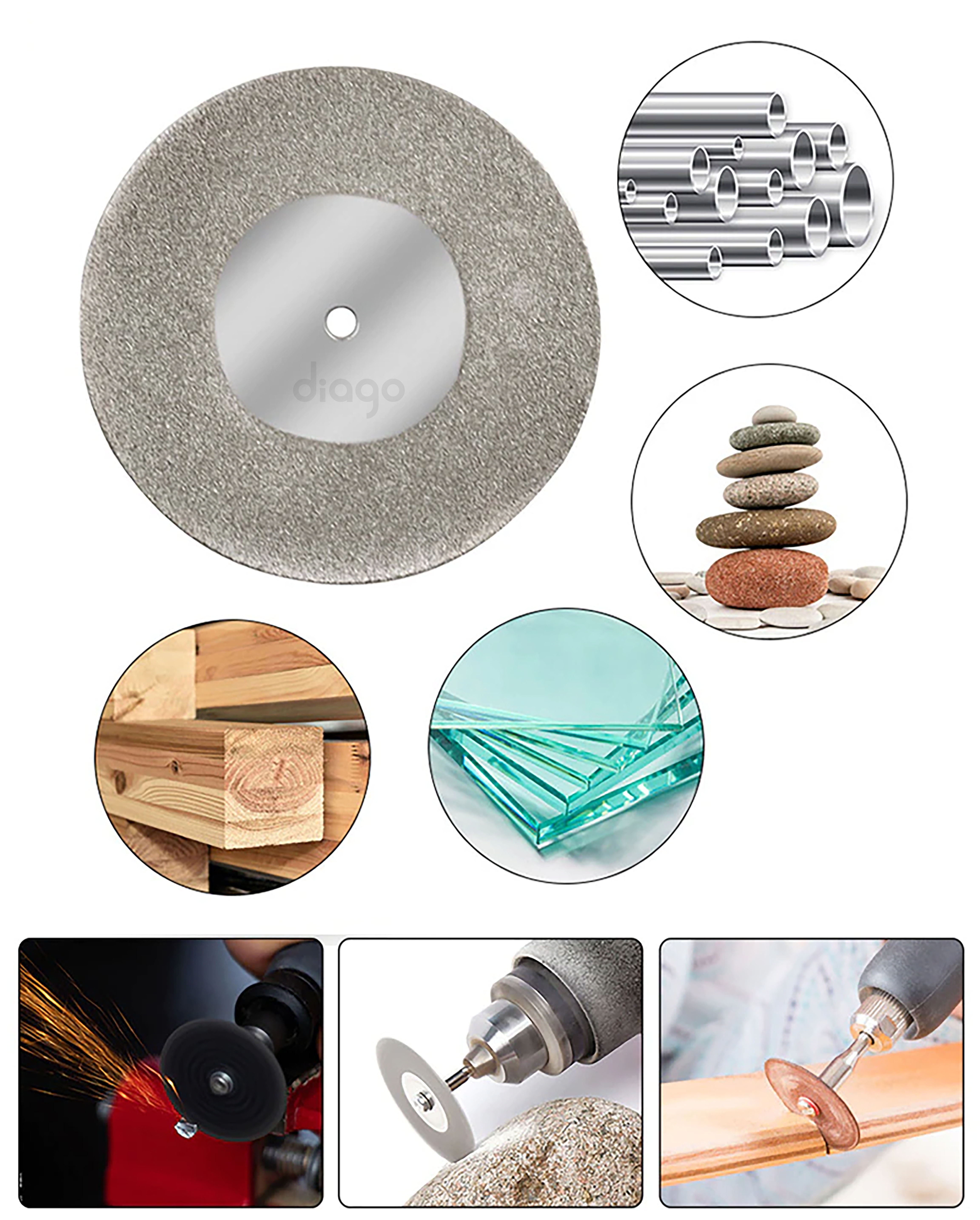 • Estos discos de corte recubiertos de diamantes de alta velocidad se pueden utilizar con su herramienta giratoria para cortar una amplia variedad de materiales.