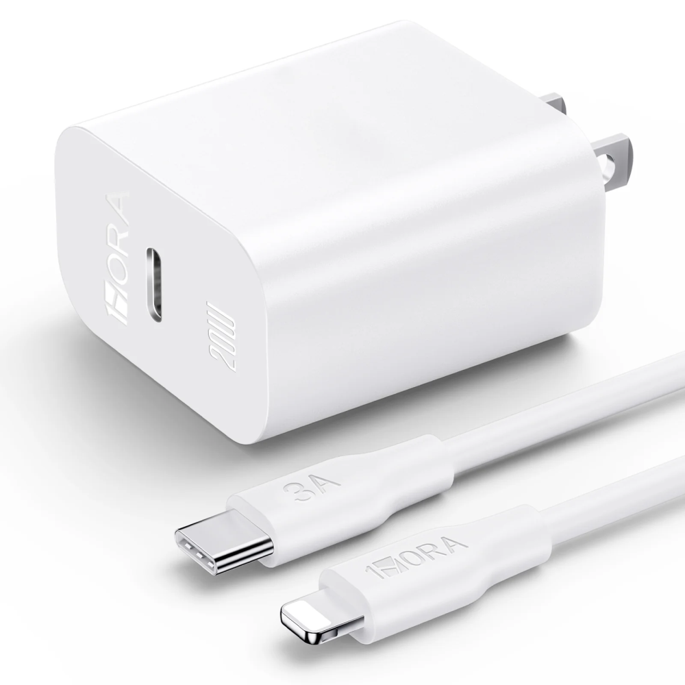 Cargador rápido USB C para teléfono de 20W con cable de iluminación tipo C a 1 m, iPhone 11 12 13 14 Carga al 57% en solo 30 minutos con cargador de 20W.