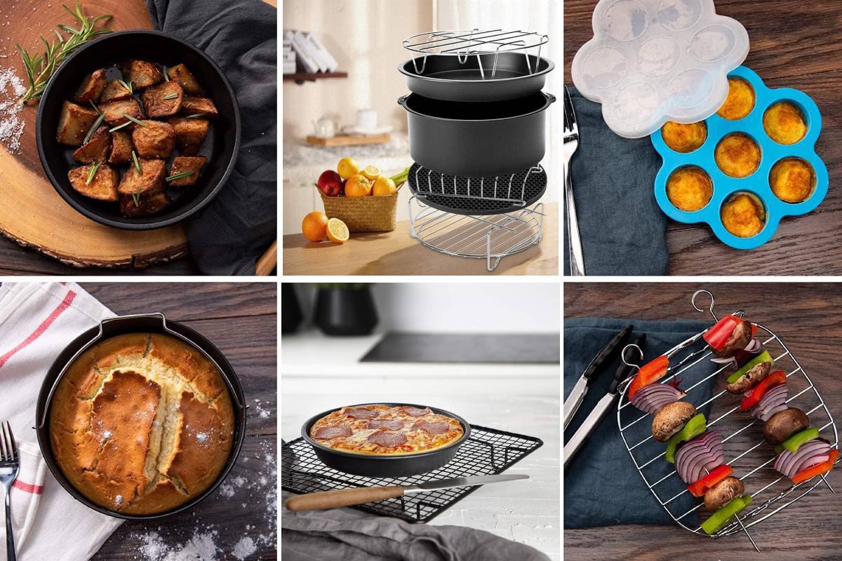Accesorios para freidora de aire, bandeja para hornear bandeja para pizza,molde para cupckaes,rejillas , adecuada para la mayoría de las freidoras de aire