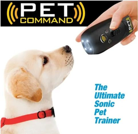 Emite 2 frecuencias por ultrasonidos y hace un sonido de clic, que puede estar usando para entrenar a su mascota, y la linterna LED pretende ayudar a ver en la noche mientras camina a su perro. Mediante la combinación de todas estas características, el Comando de mascotas pretende ser una forma rápida y humana para evitar los ladridos, correa de tracción, y otros comportamientos no deseados.