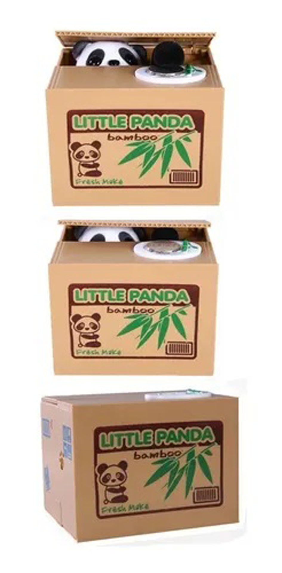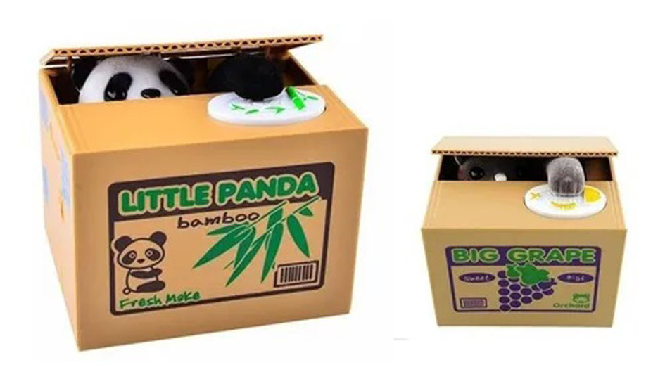 El banco panda es ideal para niños de todas las edades y una manera sencilla de enseñarles a ahorrar sus monedas; el oso o gatico mecánico que roba las monedas es fascinante para los niños y querrán hacerlo una y otra vez