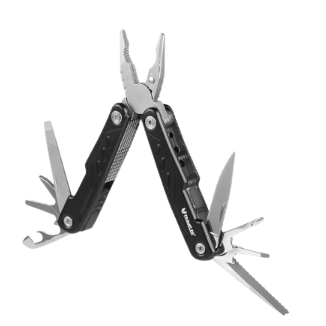 Componentes incluidos Alicates., Destornillador, Vaina., Clip de bolsillo, Cuchillo., Abrelatas.