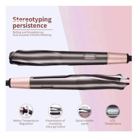 Plancha y rizador de pelo 2 en 1: diseñado con una paleta de calor trenzada única, el rizador de pelo y el alisador en uno pueden proteger tu cabello de cualquier daño innecesario mientras que ofrece fantásticas opciones de peinado. Puede obtener un alisador y rizador en un dispositivo de binación, lo que hará que su rutina matutina sea mucho más rápida.Diseñado para todo tipo de cabello: con la tecnología PTC de calentamiento rápido, obtendrás una amplia gama de temperaturas para todo tipo de cabello. El interior de cerámica proporciona calor uniforme que no quemará tu cabello. Se calentará muy rápido en 30 segundos para peinar el cabello suave y suavemente. Incluso a altas temperaturas, tu cabello permanecerá protegido. La pantalla digital LCD te ayuda a mantener un seguimiento del calor con ajustes de temperatura de 100 a 446.0 °F y 230 a 842.0 °F.Seguro para ti: el apagado automático de 60 minutos está especialmente diseñado para la seguridad. Nuestra plancha rizadora viene con un guante resistente al calor para protegerte, la funda aislada y el botón de bloqueo para empacarla fácilmente, y la bolsa de viaje para que sea fácil de deslizar en tu bolsa de transporte o en tu equipaje. El cable giratorio de 360° para alisar y rizar, sin enredos.Aplicable para viajes: el rizador y alisador de pelo 2 en 1 con doble voltaje de 110 a 240 V, lo que significa que puedes llevarlo con el adaptador adecuado para viajar a cualquier país. Disfrute de un peinado encantador durante sus vacaciones relajadas.