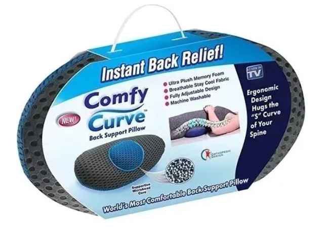 La almohada Comfy Curve está perfectamente contorneada para apoyar la espalda y la columna vertebral, ideal para aliviar la presión y el dolor lumbar. Hecho de espuma viscoelástica ultra suave con un núcleo de microesferas de soporte, está diseñado ergonómicamente para abrazar la curva en S de su columna vertebral. El inserto lumbar extraíble le brinda soporte personalizado.
