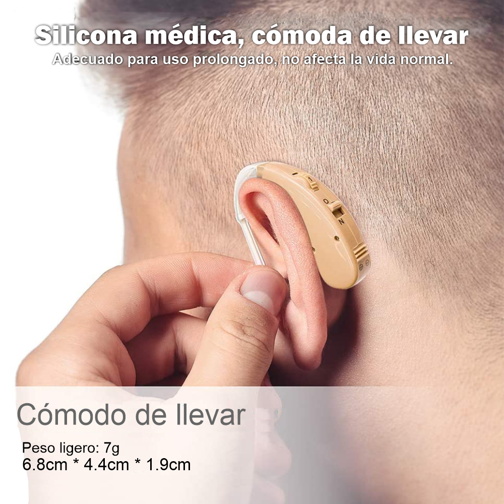 Ligero y cómodo: este audífono adopta un diseño pequeño, ligero y fácil de usar. Su diseño de contorno te permite llevarlo suave y cómodamente detrás de tus orejas. Es un compañero auditivo ideal para personas con discapacidad auditiva que escuchan música, hablan o miran. Y el diseño exterior expuesto se puede integrar perfectamente con tu piel para ocultarla en la mayor medida