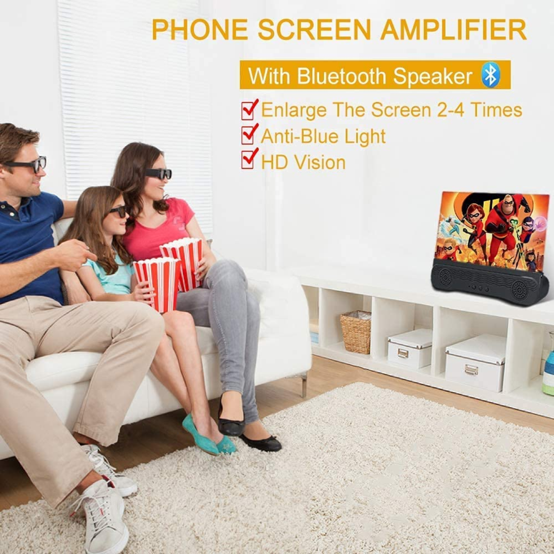 - Lupa de pantalla de 12 pulgadas con altavoz Bluetooth: el nuevo amplificador de pantalla 3D de 12 pulgadas mejorado puede ampliar la pantalla de tu teléfono 2-4 veces, se adapta completamente a la curvatura del ojo humano, más cómodo de ver. La lupa de pantalla reducirá las molestias y la fatiga visual causadas por el enfoque a largo plazo en la pantalla pequeña, y puede reducir eficazmente la radiación.