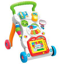 Con el andador de bebé aprende a caminar mientras experimenta. Incluye diferentes juegos que estimulan el aprendizaje mientras el pequeño se divierte: un espejo, un teléfono con sonido, un piano con diferentes melodías y colores y varios juegos que estimulan las habilidades motoras, la coordinación ojo-mano, así como la destreza del pequeño. El andador está recomendado para bebés de 6 a 30 meses.