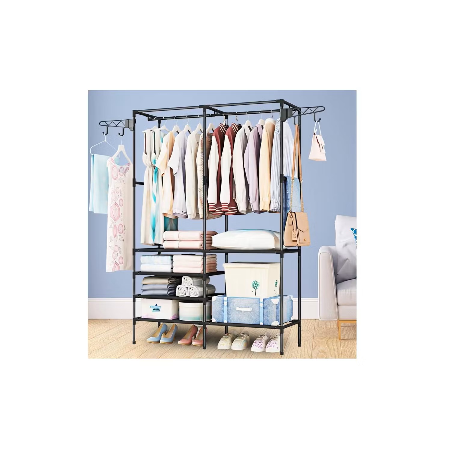 Ahorro de espacio: Este perchero está diseñado de una manera extremadamente práctica, que puede mantener su ropa y accesorios diarios organizados y permitirle encontrar rápidamente lo que necesita.