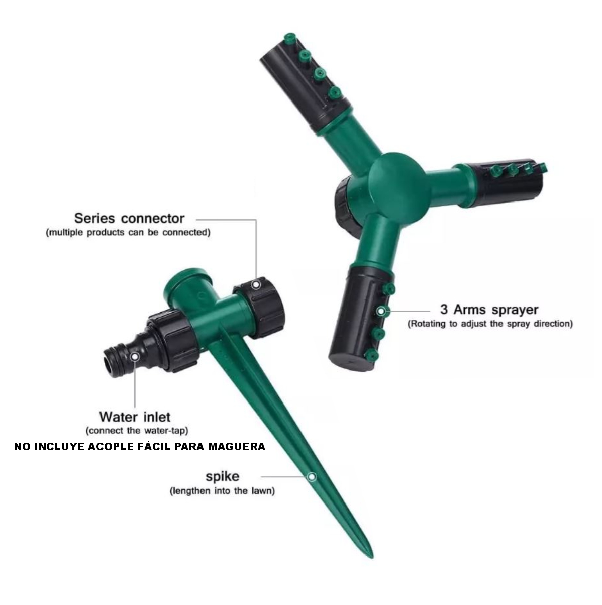 El sistema efectivo de riego por aspersión de agua puede ser el objetivo de ahorrar más agua ajustando la densidad, tamaño y alcance del agua. @@Puede cuidar su césped, plantas, flores, verduras y más. Se puede girar 360 grados para hacer aerosoles, la forma en que gira, mejora mucho el césped.