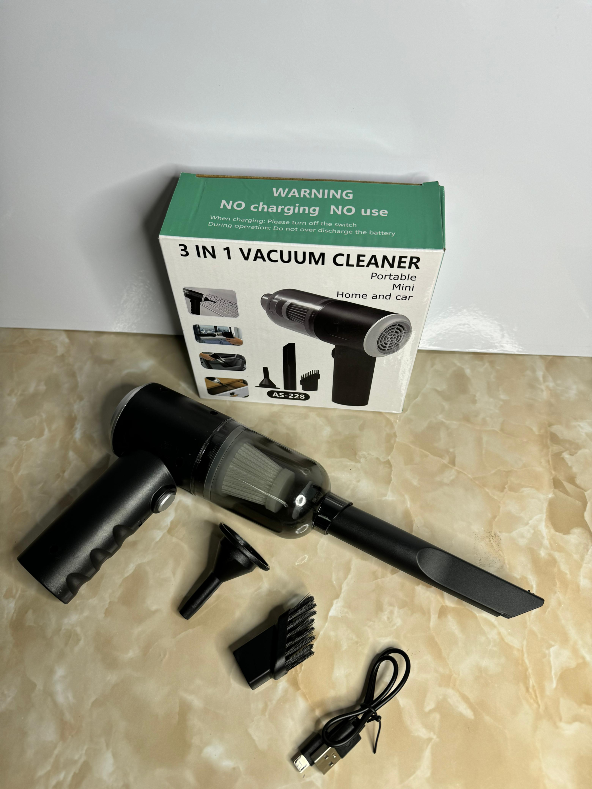 Aspiradora de Mano Portátil 3 en 1 Modelo AS-228 ¡Descubre la revolucionaria Mini Aspiradora Portátil 3 EN 1: la solución perfecta para mantener tu hogar limpio y libre de polvo! Ya sea que necesites eliminar las migas de tu escritorio, limpiar los pelos de tus mascotas en el auto o deshacerte de la suciedad en tus aparatos electrónicos, nuestra Mini Aspiradora Portátil es el dispositivo imprescindible que debes tener. ESPECIFICACIONES: Material: Plástico ABS Tamaño: 16 * 15.5 * 6 Peso: 215 Gramos (Aprox.) Característica Principal: Absorción de polvo Edad: +18 Cantidad del Producto: 1 Aspiradora de Mano Portátil 3 en 1 Aplicación: Absorción de suciedades CARACTERISTICAS: – A pesar de su tamaño compacto, esta pequeña maravilla cuenta con una potente succión que te permitirá eliminar rápidamente la suciedad y el polvo en cualquier superficie. – Gracias a su diseño ergonómico y peso liviano, podrás llevarla contigo a cualquier lugar. Ya sea en tu bolso, mochila o incluso en el compartimento de tu auto, siempre estarás preparado para una limpieza rápida y eficiente. – Con un solo botón de encendido y apagado, nuestra Mini Aspiradora Portátil 3 EN 1 es extremadamente fácil de usar. ¡Solo necesitas un par de minutos para dominarla! – y Ahora te traemos Lo Nuevo que tiene este modelo, es un soplador de polvo que se conecta en la parte trasera. – Incluimos una variedad de accesorios prácticos para adaptarse a tus diferentes necesidades de limpieza. Desde una boquilla estrecha para rincones difíciles hasta un cepillo suave para superficies delicadas, nuestra aspiradora tiene todo cubierto. – Fuerza de Motor: 120w – Peso de 215 Gramos (Aprox.) – la capacidad del polvo: 0.1 L – Tipo de Carga: Por USB