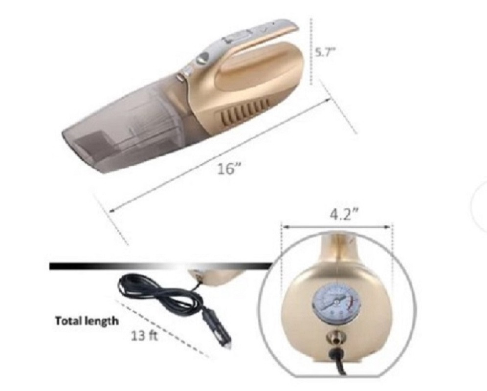 - 4 en 1 aspiradora multifunción para coche (aspiradora + bomba infladora de neumáticos + medición de presión + iluminación LED)