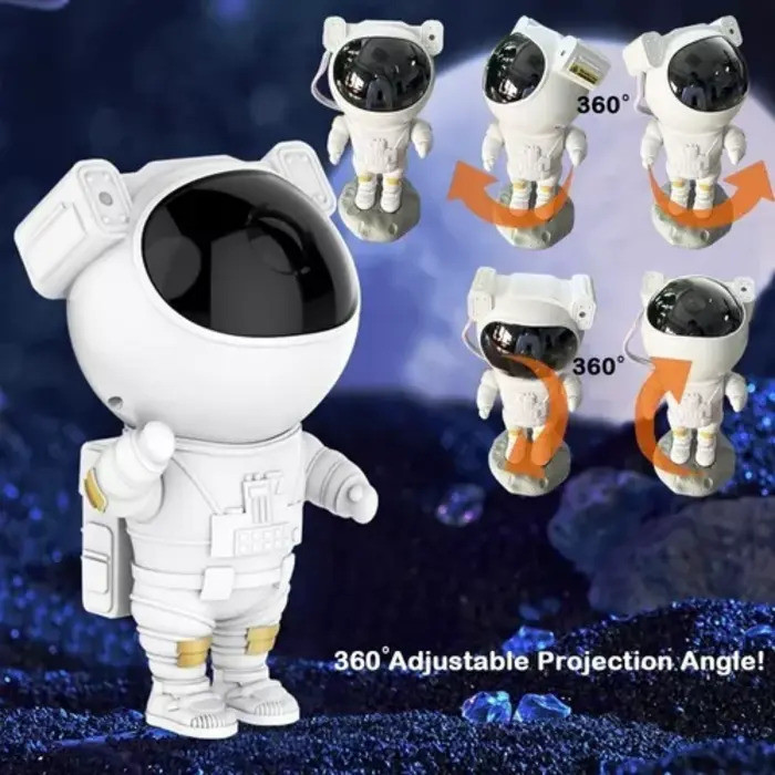 Proyecto en cualquier lugar que quieras: el proyector de luz nocturna puede ser un gran juguete. La cabeza del astronauta se puede girar 360° a través de la fuerza magnética, lo que permite que la proyección de la nebulosa gire en cualquier ángulo y se puede proyectar en cualquier lugar sin restricciones. La base lunar es desmontable, los brazos se pueden mover 360°, y se pueden tomar varias poses, el proyector de luz de estrellas también es un buen adorno decorativo.