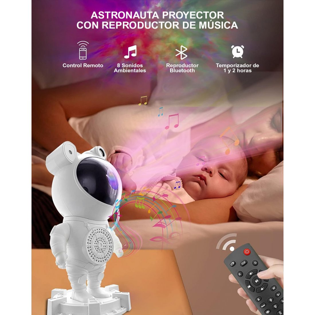 El Proyector Astronauta para Bebés y Niños con Parlante Integrado de GHORA MASTER es más que un simple dispositivo, es una puerta a un universo de sueños y tranquilidad. Diseñado con amor y cuidado, este proyector convierte cualquier habitación infantil en un planetario personal, proyectando un cielo estrellado que fascina y relaja a los más pequeños. Equipado con un parlante integrado, este dispositivo permite reproducir melodías relajantes o cuentos, creando el ambiente perfecto para el descanso.