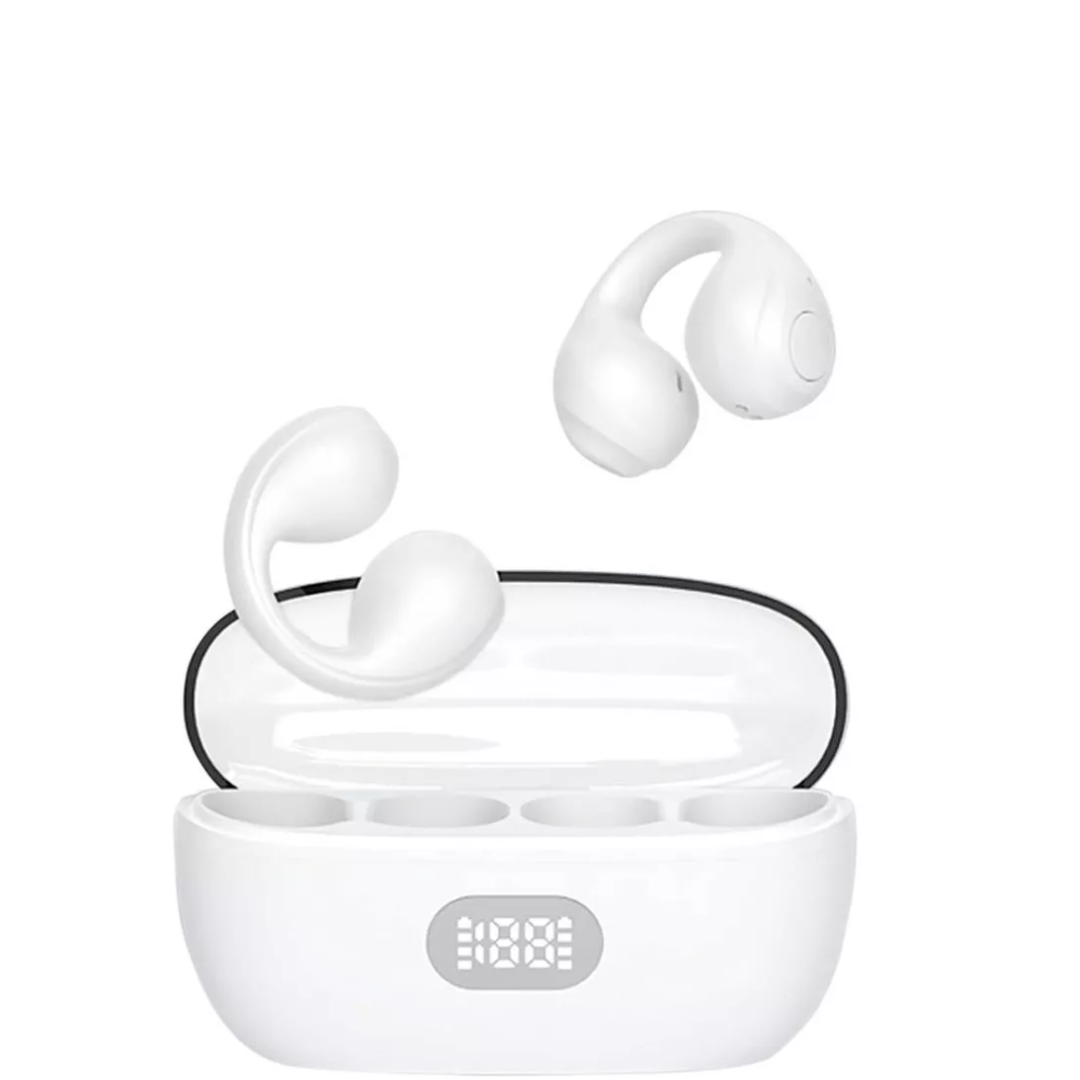 Auriculares inalámbricos con clip de oreja de conducción ósea: cuerpo exquisito y compacto, utilizando forma geométrica de material metálico, concepto de diseño simple y único.