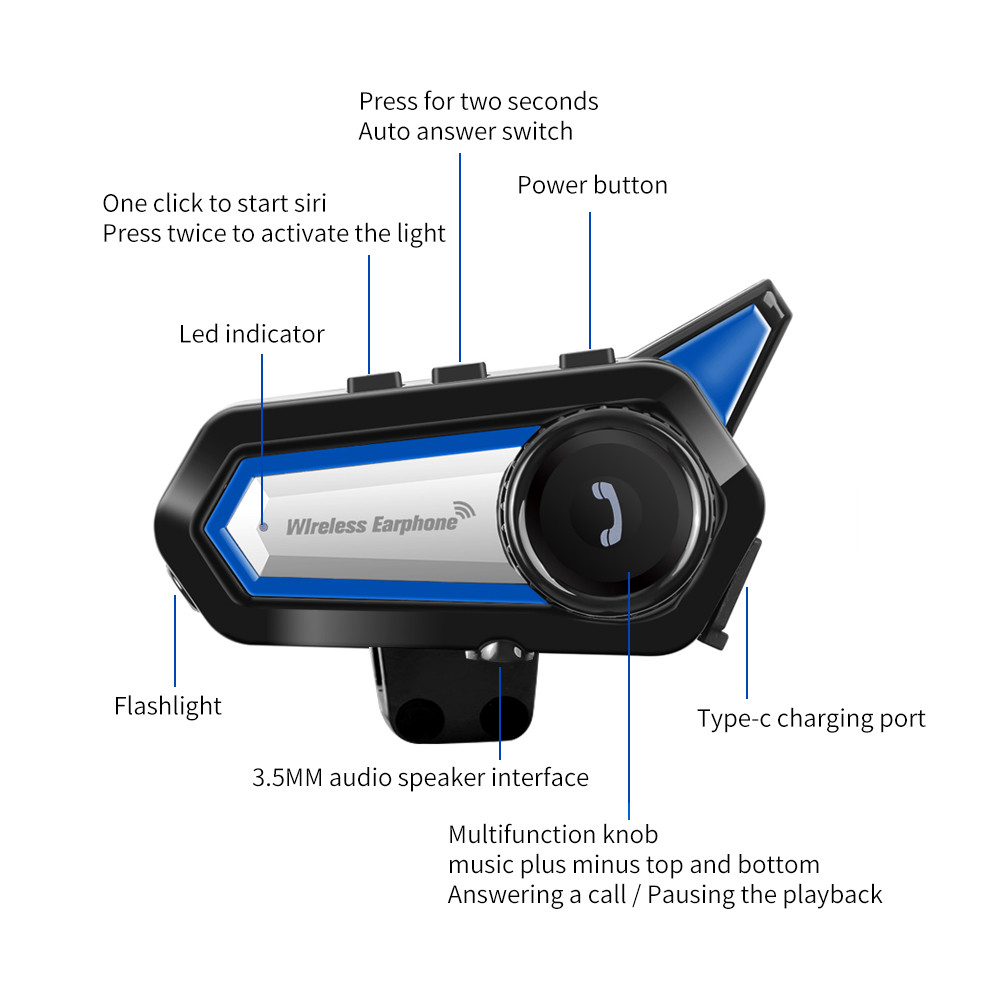 Respuesta automatica: Los auriculares bluetooth para casco de motocicleta responden llamadas sin buscar un teléfono móvil, respondiendo automáticamente las llamadas entrantes, lo que es más seguro y más conveniente.