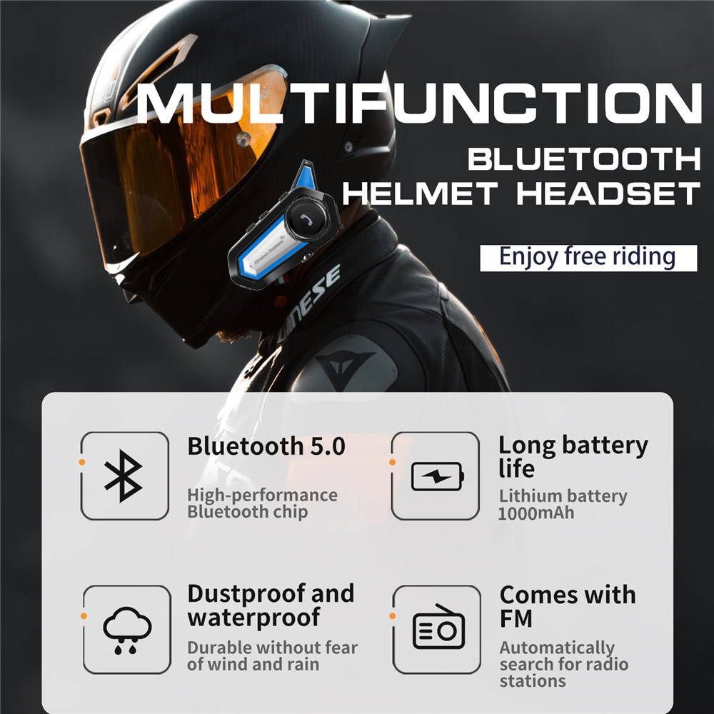 Rendimiento estable: los auriculares para casco de motocicleta adoptan el estándar de tecnología Bluetooth 5.0, transmisión estable, cobertura más amplia, velocidad más rápida, menor consumo de energía.