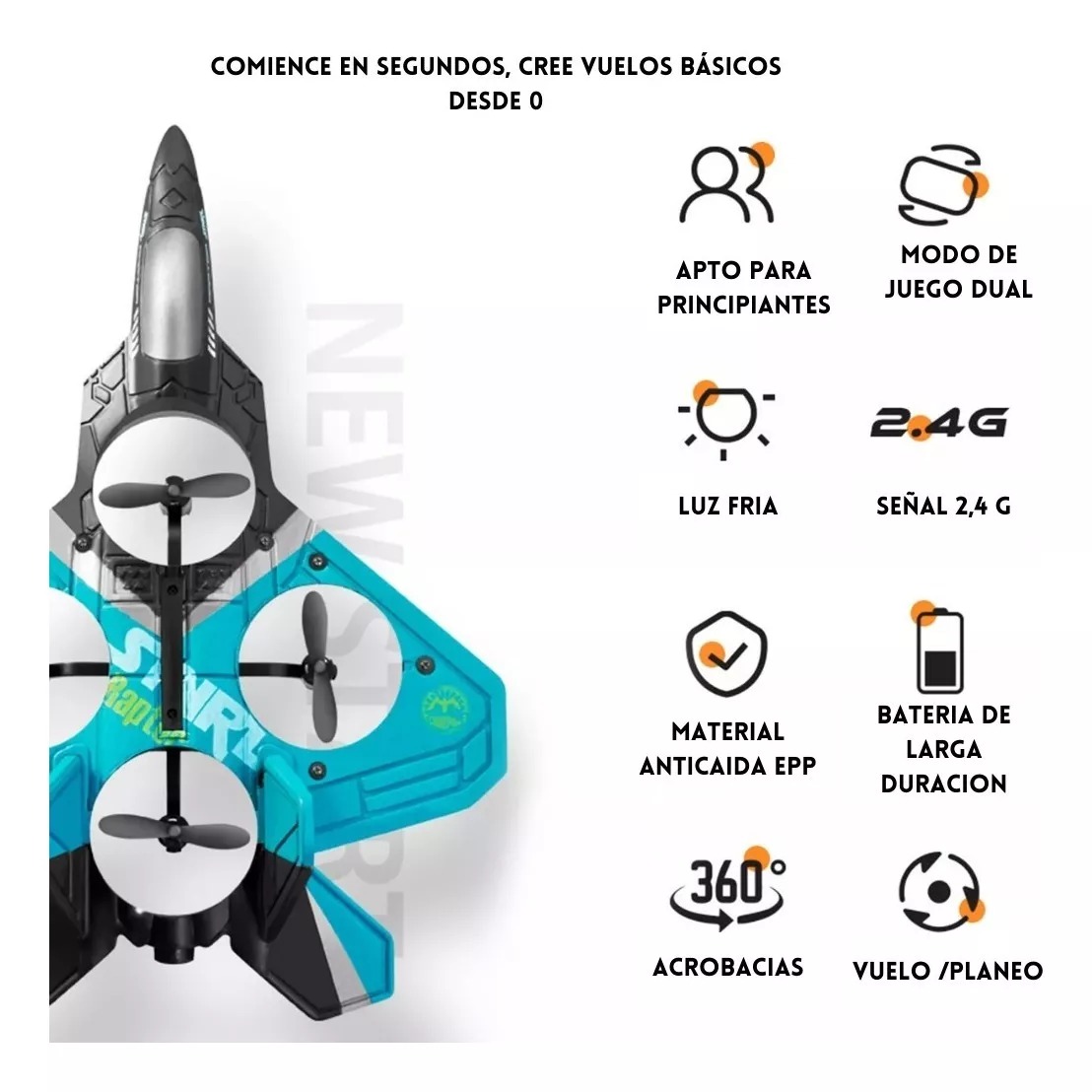 - 1.Fácil operación: planeador de avión RC con sistema de autoestabilización, fácil de operar, adecuado para principiantes, niños y adultos. 2. Modos dobles: planeador RC con detección de gravedad de modo dual, simplemente presione un botón y tire de la palanca para controlar el avión y realizar vuelos acrobáticos. 3,2,4 GHz: con tecnología remota avanzada de 2,4 GHz, proporciona un alcance de señal de 300 metros, el avión controlado a distancia adecuado para la competencia. 4.Hermosa luz: el avión RC adoptó un diseño de luz LED, hermoso y fresco, que le permite volar de noche y ver el avión con luces. 5.Regalo perfecto: el avión planeador RC de 2,4 GHz es un regalo de juguete sorprendente para niños y niñas, que es ultraligero, flexible, resistente y duradero. Tipo de artículo: Juguete planeador con control remoto Material: EPP, componentes electrónicos, plástico Frecuencia: 2,4 Ghz Batería del cuerpo: Batería de litio de 3,7 V 800 mAh (incluida) Batería del control remoto: 2 pilas AAA de 1,5 V (no incluidas) Tiempo de carga: Aproximadamente 60 minutos Tiempo de vuelo: unos 15 minutos Distancia del control remoto: 300 metros Edad adecuada: mayores de 14 años 1 planeador con control remoto 1 batería para planeador 1 control remoto 4 hélices 1 cable de datos 1 manual
