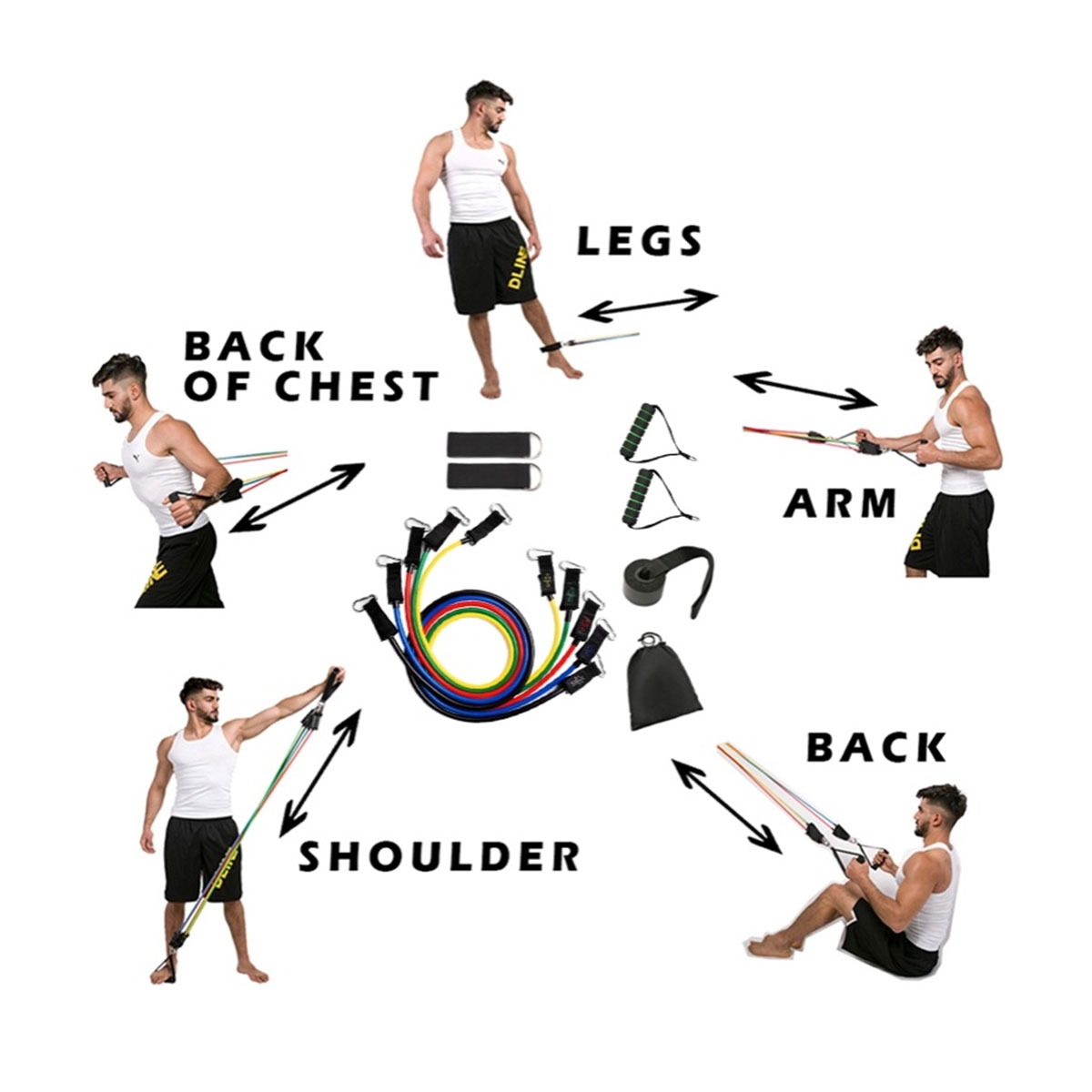 Kit puedes ejercitar tus glúteos, caderas y piernas. con su tensión media Y su cómoda tobillera mejorando tus condiciones de ejercicio. perfecto para quienes quieren hacer ejercicio en casa con el mejor resultado. ¡Excelente para realizar tus entrenamientos en casa! Especificaciones del kit de tubos elásticos 11 Elementos de entrenamiento funcional de Pilates. Bandas elásticas hechas de caucho de látex profesional de alta calidad y resistencia, cada elástico mide 1,20 m de largo, puedes crear fácilmente más de 30 niveles de resistencia diferentes colocando 1, 2, 3, 4 o 5 elásticos a la vez, perfecto para culturismo, yoga. y Pilates etc.
