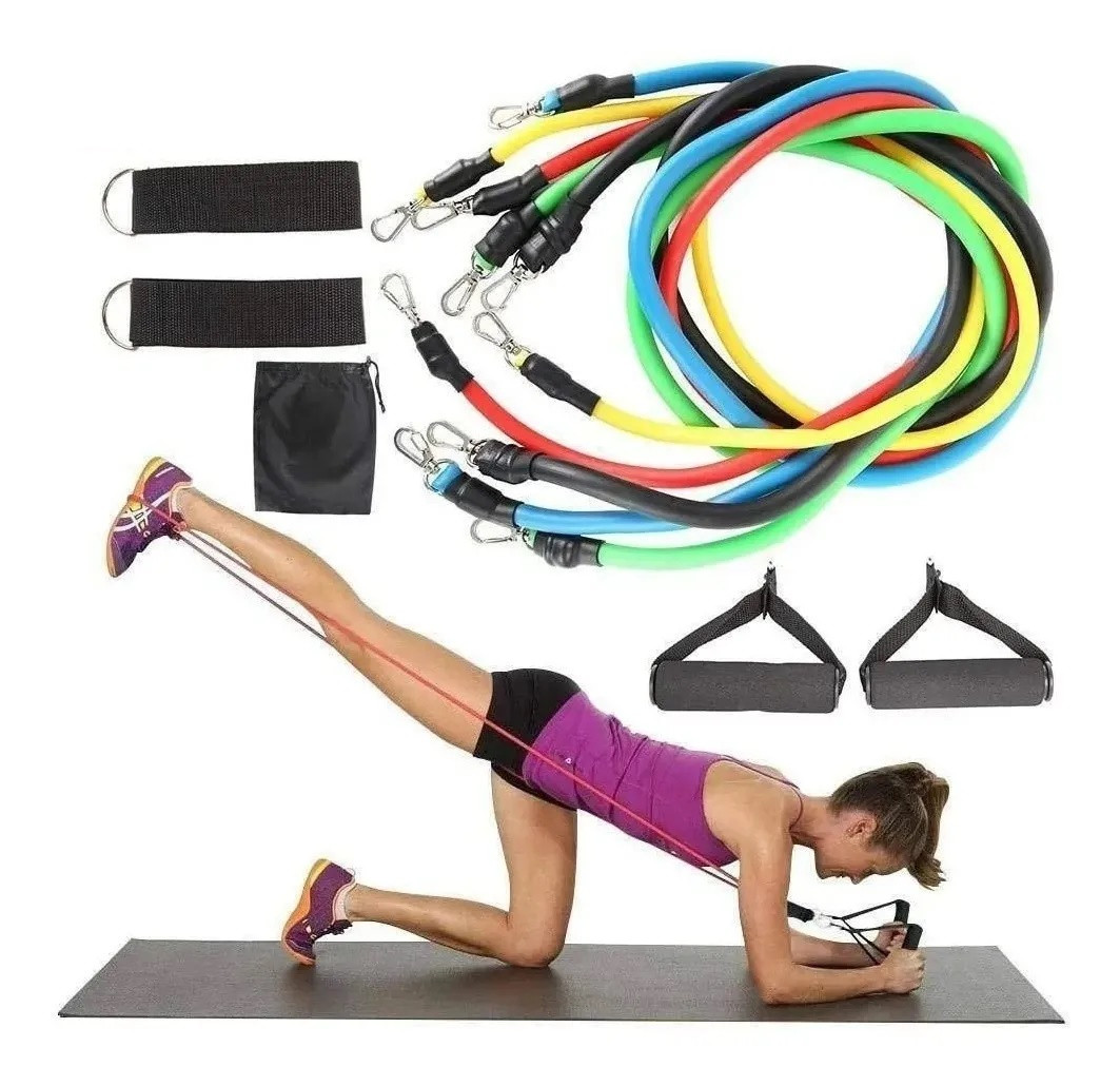 kit de 5 bandas elásticas cada uno con diferentes resistencias para mayor exigencia.