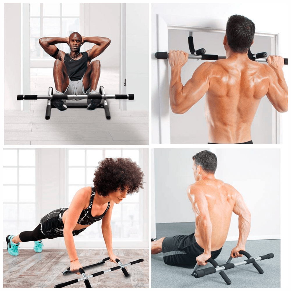 Gimnasio personal: entrena fácilmente y mantente en forma en casa. Se instala en segundos y convierte cualquier puerta en un gimnasio personal. Incluye guía de ejercicios.
