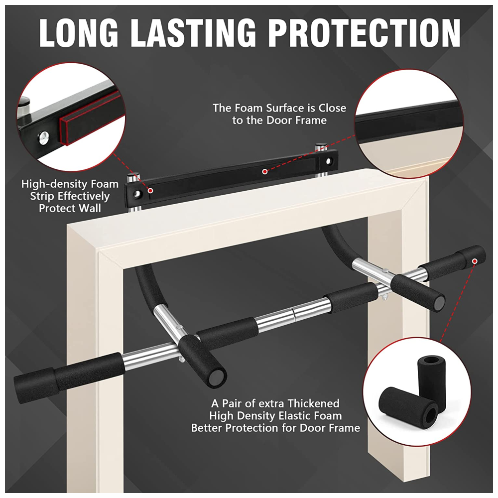 Materiales resistentes: hechas de acero resistente, las barras de tracción de metal garantizan robustez y fiabilidad, y las empuñaduras de la barra cuentan con espuma cómoda de grado profesional para un agarre cómodo y ergonómico.