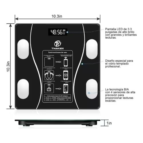 Podrás hacer seguimiento de tu peso y el de 7 usuarios más, con conexión bluetooth a smartphone para enlazar con la aplicación “OKOK”, además de medir, permite conservar históricos de: Peso, Índice de masa corporal (IMC), Porcentaje de grasa corporal, Índice de masa muscular, Porcentaje de agua corporal, Grasa visceral, Densidad ósea, Tasa de metabolismo basal. Por medio de los históricos, la aplicación grafica el cambio de dichos índices a través del tiempo.