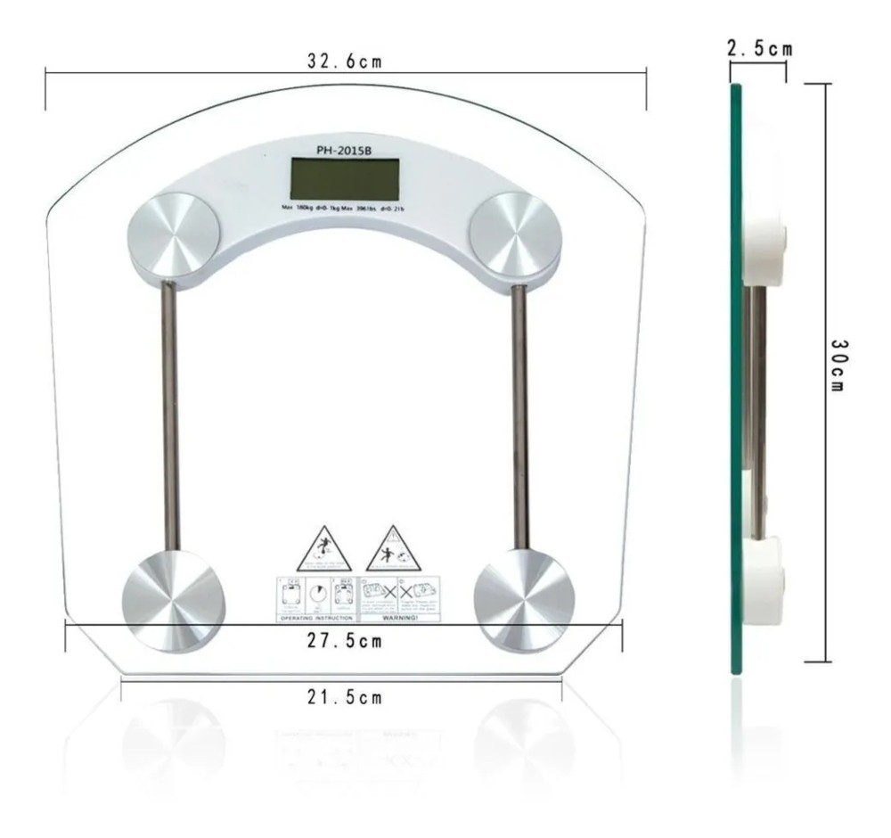 PESO INICIAL: 7KG @CAPACIDAD; 180KG @GRADUACIÓN: 0.1KG @PANTALLA: 4 DÍGITOS LCD @PODER: 3 V CR2032 BATERÍA DE LITIO @TEMPERATURA DE FUNCIONAMIENTO: 8 SEGUNDOS @PANTALLA DE BAJO VOLTAJE: “LO” @VISUALIZACIÓN DE ERROR: “ERR” PANTALLA CON SOBREPESO: @” VIEJO”