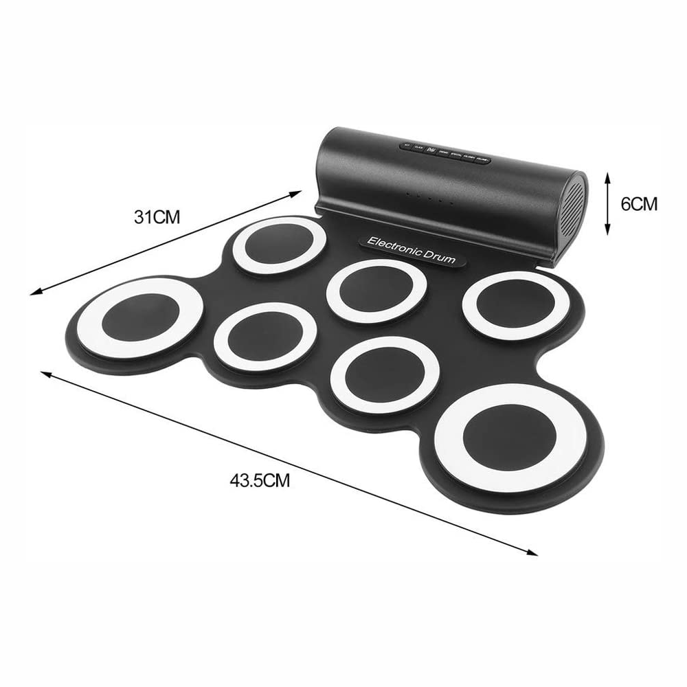 Función extendida: el kit de tambor portátil puede coincidir con tu teléfono móvil, tableta, PC y otros dispositivos que podrían soportar música. También tiene conector para auriculares, puedes tocar la batería en cualquier momento, pero no molestará a tu vecino.