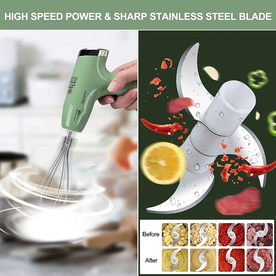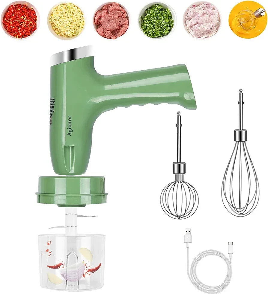 Batidor con picador 3 en 1 @@Picadora de alimentos 3 en 1: El cortador de verduras eléctrico adopta un diseño 3 en 1, adecuado para mezclar, moler, pelar ajo, etc. Se puede utilizar como batidor de huevos. @Uso sencillo: El batidor de huevos electrico ayuda a picar los alimentos de manera uniforme y corta rapidamente las verduras en trozos de varias formas y tamano, haciendo la preparacion de los alimentos mas facil. @USB diseño recargable: La picadora eléctrica de alimentos es ligera y fácil de llevar, adopta un diseño recargable por USB. Está hecho de PP y ABS de calidad alimentaria. @AplicacionUniversal:La picadora de ajo electrico es adecuada para cocinas y restaurantes, ideal para viajes, camping y picnics. Es aplicable para triturar jengibre, pimientos, cebollas, etc. @Regalo útil: La cortadora de verduras eléctrica es un gran regalo para que sus amigos y familiares puedan satisfacer diferentes necesidades, adecuado para muchos tipos de verduras y frutas. @@Descripción: @@El cortador de verduras eléctrico adopta un diseño 3 en 1, adecuado para mezclar, moler, pelar ajo, etc. y se puede utilizar como batidor de huevos. @@Características: @@Ayuda a picar los alimentos uniformemente y corta rápidamente las verduras en trozos de varias formas y tamaños.