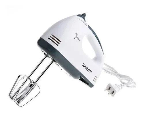 La batidora Scarlett HE-133 es práctica y sencilla de usar. Su diseño compacto y de fácil agarre te permitirá batir mezclas esponjosas sin forzar tus brazos y muñecas. Podrás moler ingredientes en el mismo recipiente en el que se preparan y utilizarla para hacer diferentes tipos de purés, salsas y sopas. Además incluye 2 batidores de gancho.