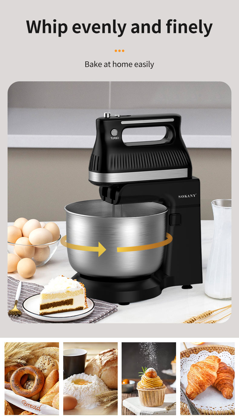 Batidora de mano multifunción, desmontable con capacidad de 4L, 5 velocidades, potencia de 500W, con función Turbo. Es perfecta para preparar grandes cantidades de mezclas en pocos minutos. Se destaca por su potencia y capacidad de procesar ingredientes. Te permitirá acelerar la producción y aumentar la eficiencia del trabajo, ¡más preparaciones en menos tiempo!
