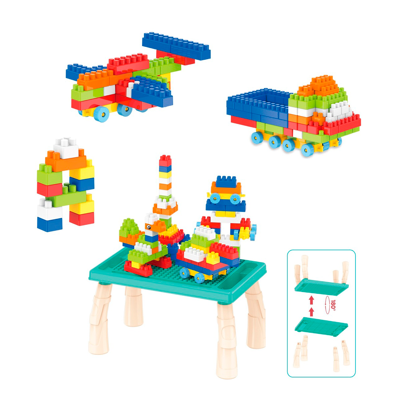 Bloques de construcción Mesa Bloques de construcción 260 piezas Caja de colores para niños/niñas Ensamblaje interactivo de bricolaje Montaje de juguetes de bloques de construcción para niños su material es plástico, 100pcs y su tamaño es 40cm-6.5cm-24cm recomendado para niños mayores de 3 años