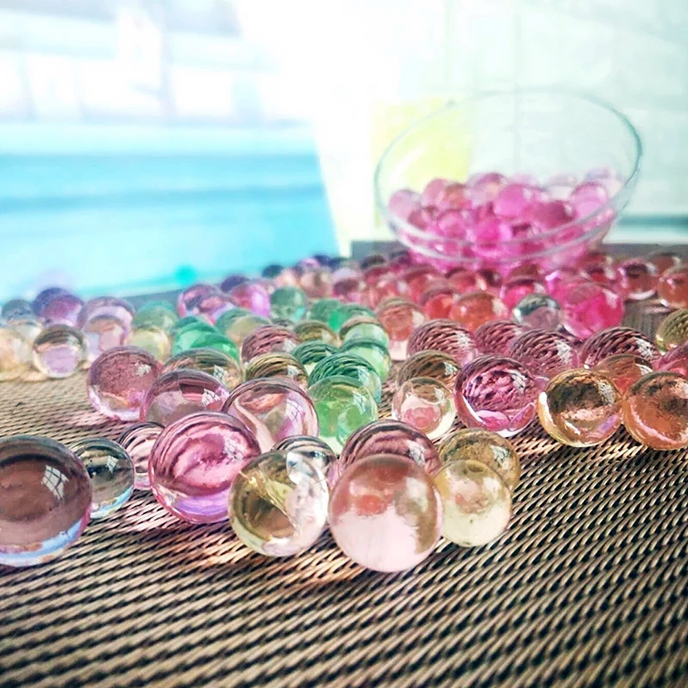 Decoración: Las bolas de hidrogel también pueden ser utilizadas para decorar objetos como jarrones o platos. Simplemente coloca las bolitas en agua y deja que se expandan. Luego, colócalas en el objeto que deseas decorar y déjalas secar.