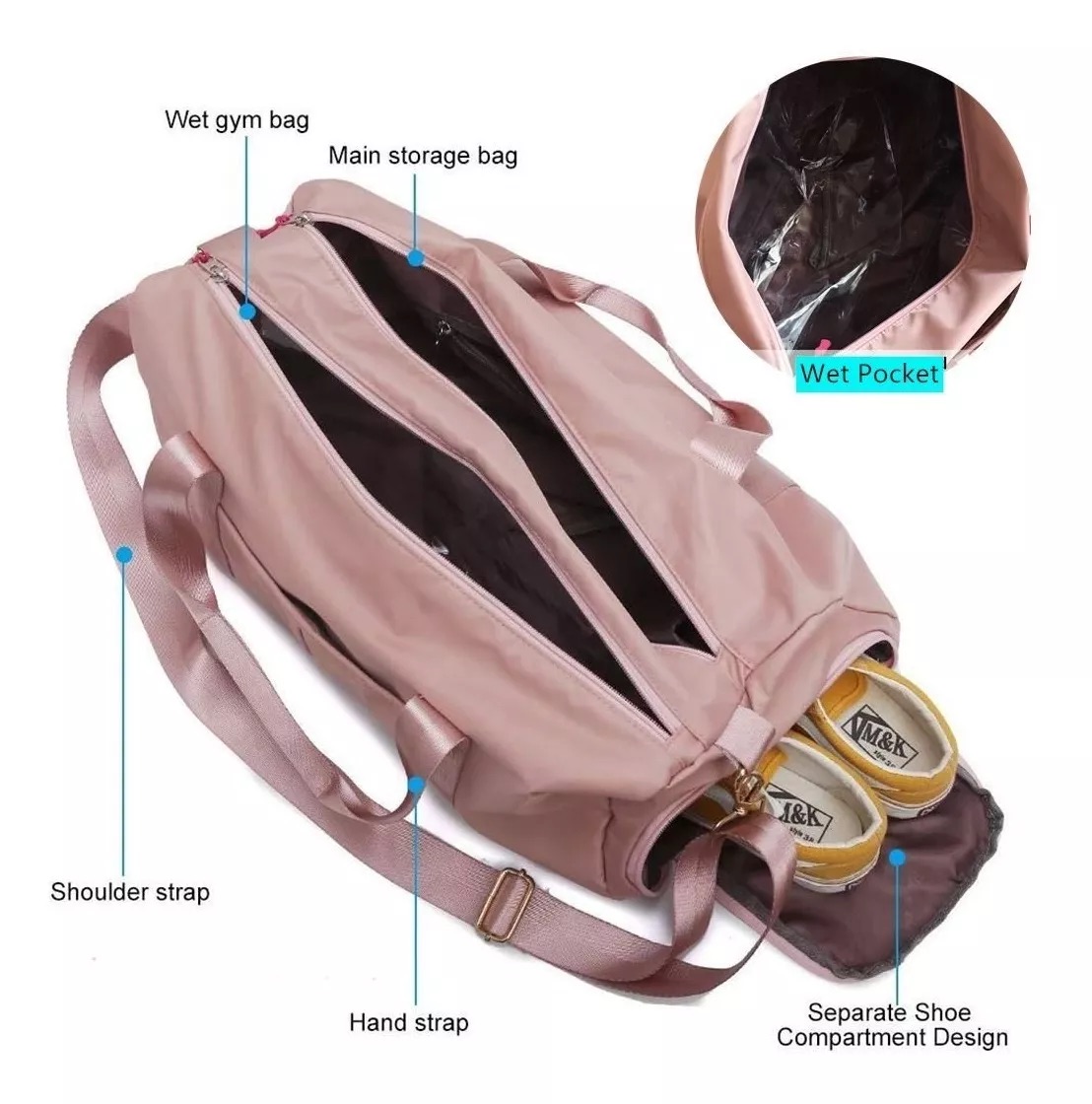 Bolsillo para almacenar ropa húmeda o mojada.