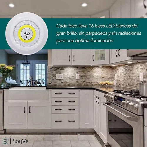 ENCENDIDO/APAGADO POR PULSACIÓN O MANDO A DISTANCIA: Estas luces led inalámbricas con mando se pueden encender o apagar haciendo una leve pulsación en el centro del foco, o bien mediante el mando a distancia incluido.