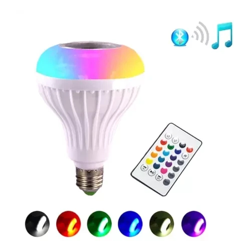 Bombillo led parlante bluetooth, con este dispositivo puedes escuchar música, apagar o encendre la luz con el control remoto y cambiar los diversos colores de luz