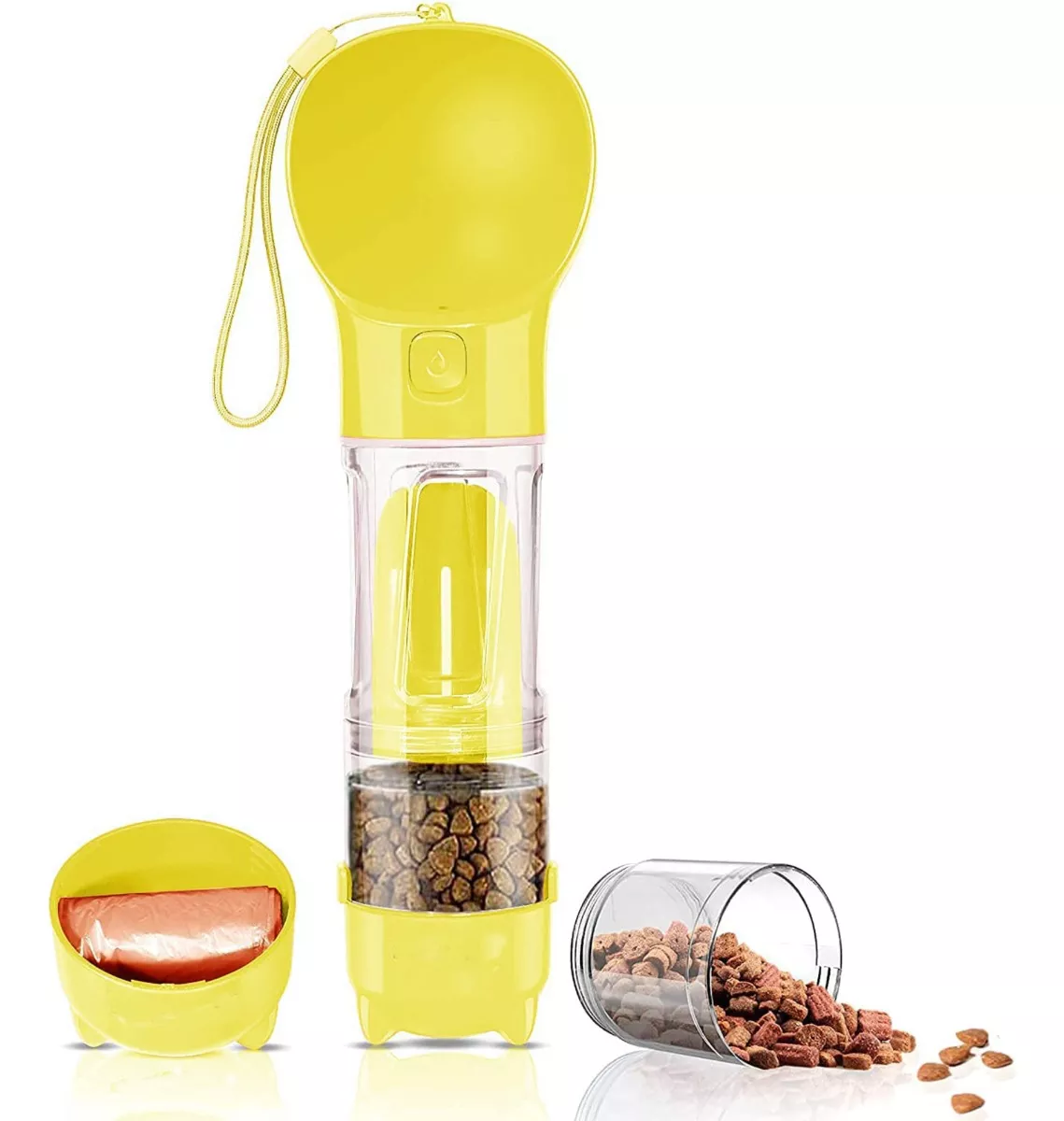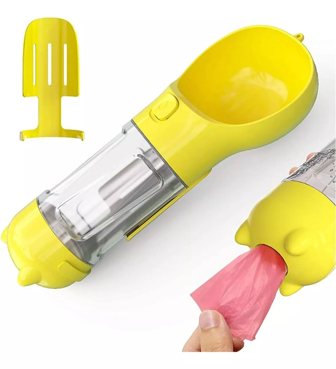 Botella de agua multifuncional para perros: tu mascota puede disfrutar de agua pura y segura y comida suficiente en un viaje o caminar con ella. Además, puedes limpiar los excrementos de la mascota con la pala adjunta y ponerlo en la bolsa de conveniencia adjunta