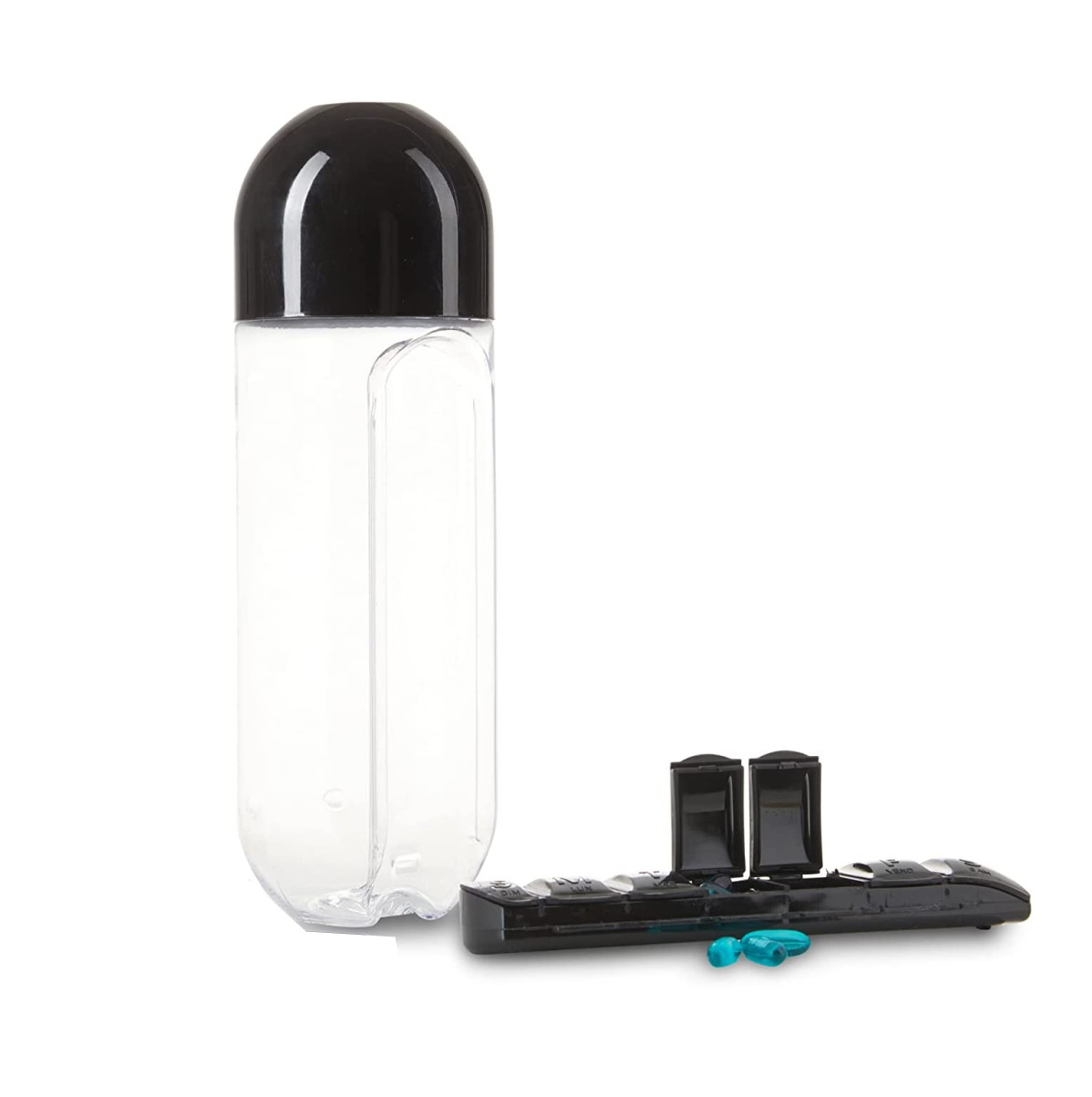 El organizador de pastillas se puede quitar de la botella. Se puede utilizar de forma independiente y fácil de recargar medicamentos o suplementos. El organizador para botellas de agua te permite elegir una semana.