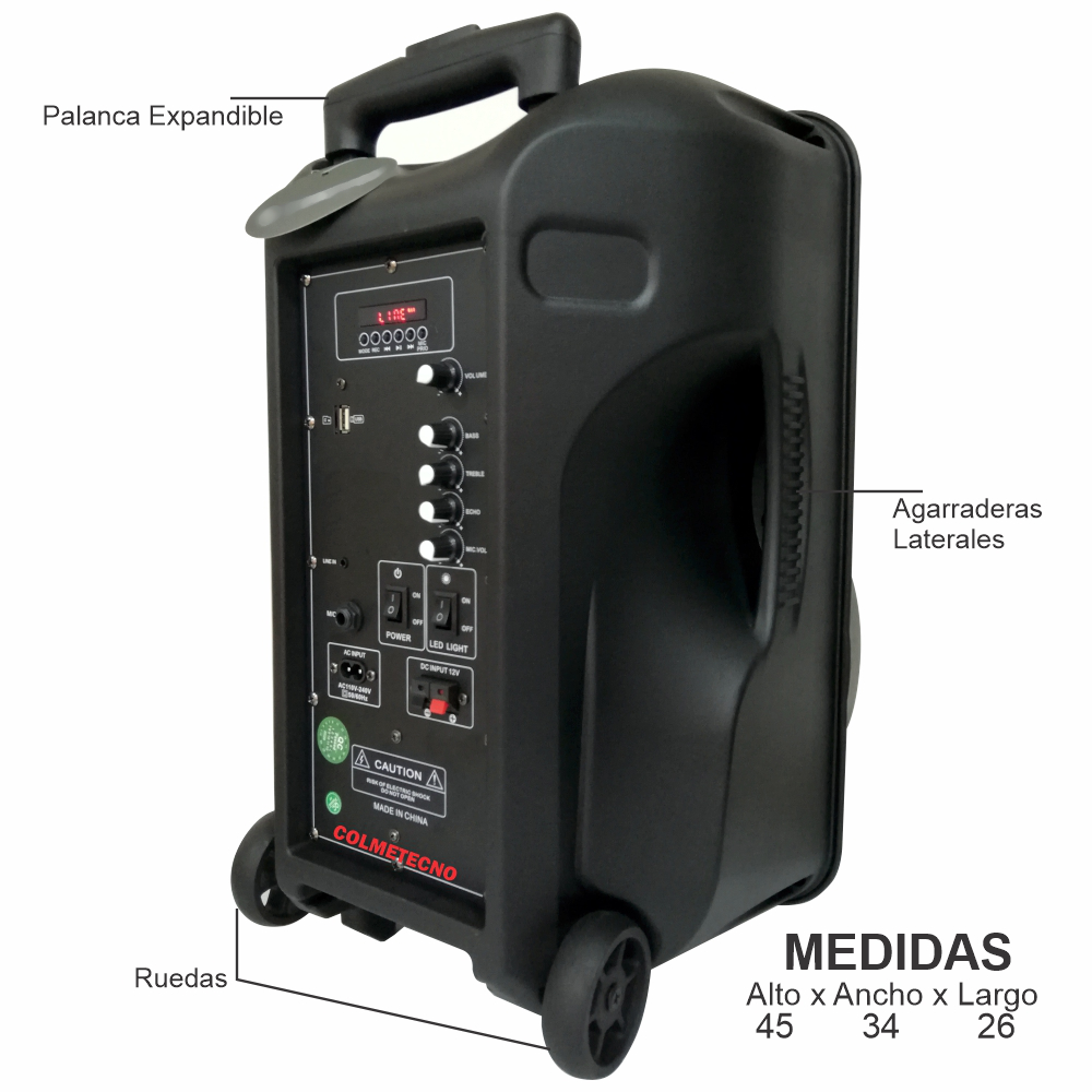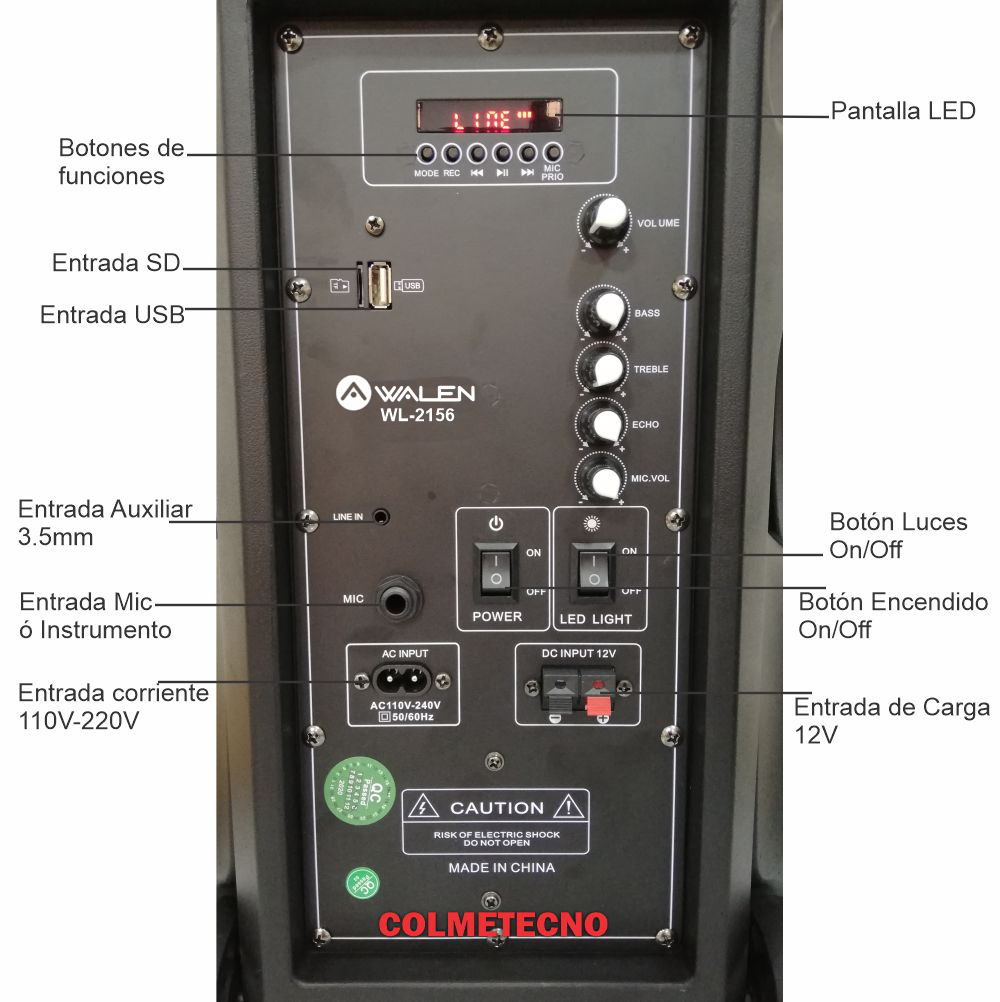 CABINA DE SONIDO RECARGABLE BLUETOOTH TIPO MALETERO DE 12″ BLUETOOTH WALEN WL-2156 + MICRÓFONO + CONTROL REMOTO