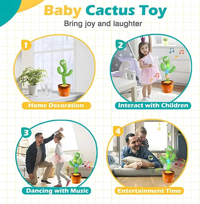 Junto a Cactus Bailarin, desde hoy los momentos de juego, diversión y descanso ahora estarán más acompañados. No existen límites para disfrutar de este peluche, el cuál será una fuente de tranquilidad para los mas pequeños ayudándolos a desarrollar habilidades sociales, promoviendo su imaginación y creatividad.