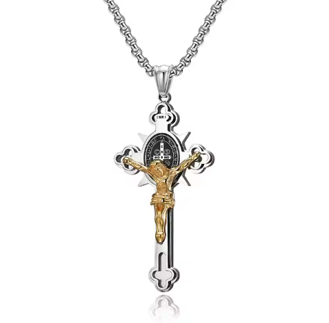 Collar con colgantes de cruz de crucifijo de San Benito.