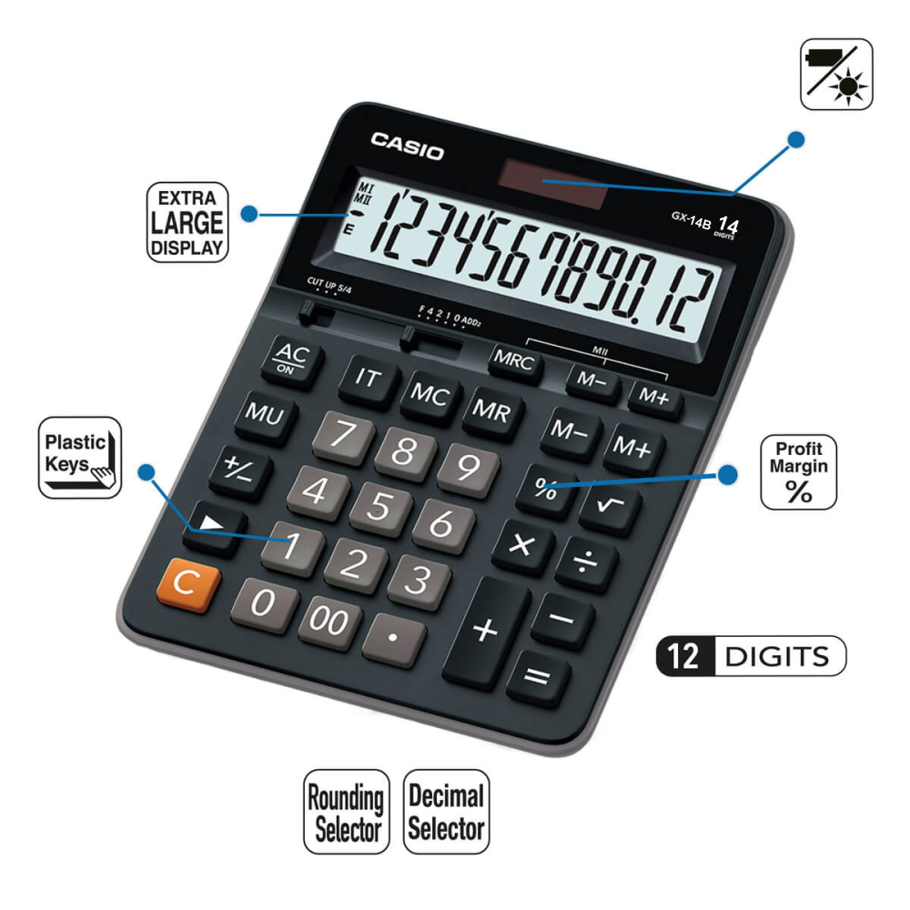 CALCULADORA BASICA DE ESCRITORIO CASIO GX-14B TAMAÑO GRANDE 14 DIGITOS