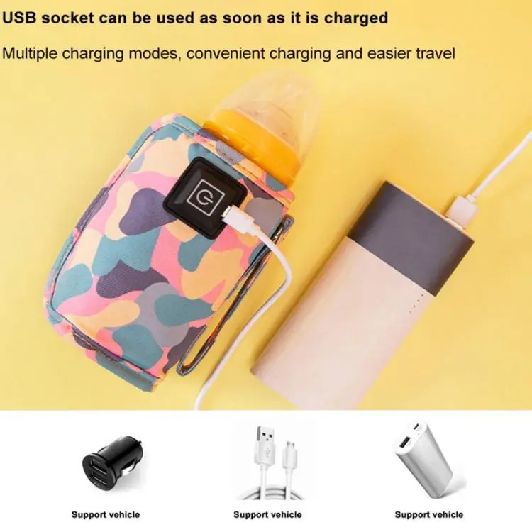- Carga USB: viene con cable USB, simplemente conecte el cable en cualquier banco de energía, USB del vehículo o interfaz del ordenador portátil. El bolsillo adicional de nuestro calentador de botellas puede colocar un banco de energía, te ayuda a calentar la leche en cualquier lugar.