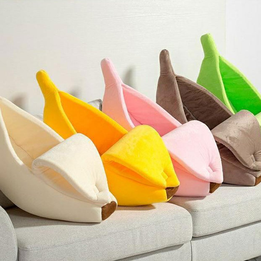 Casa para mascotas con forma de plátano, bonita, perfecta para adaptarse a diferentes ambientes domésticos.