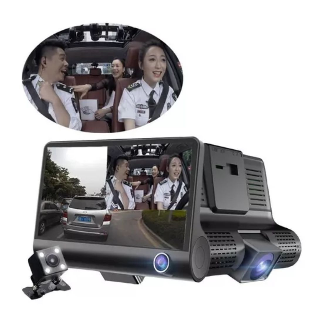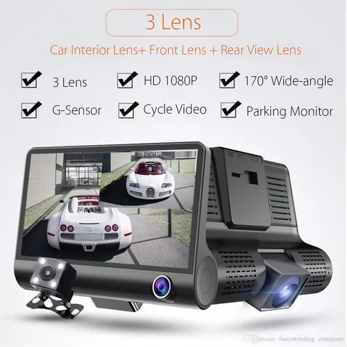 1. nueva videocámara de tres lentes para coche,Una cámara frontal,Una cámara trasera Y cámara interior