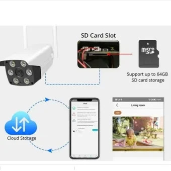 La cámara admite guardar un archivo de seguridad local de hasta 64GB de tarjeta TF y también proporciona servicio de almacenamiento en la nube