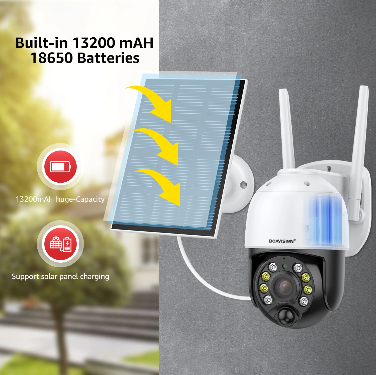 -Panel solar de 5W, batería integrada de 13200mAh, 180 días de carga gratuita