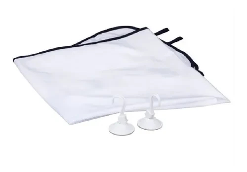 Capa en Naylon Fleak de 1.15 cm x 70 cm, ajuste en velcro para todas las medidas, sujetadores de succión en pvc de gancho y argolla, el estuche de empaque es la misma capa con cierre de cremallera.