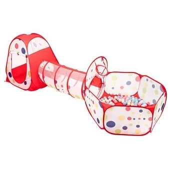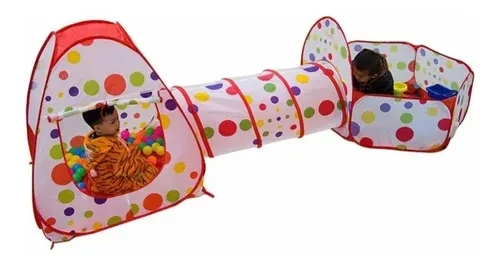 • Espacioso. El producto consta de Tienda, túnel y piscina de pelotas con aro con el tamaño ideal para los niños.