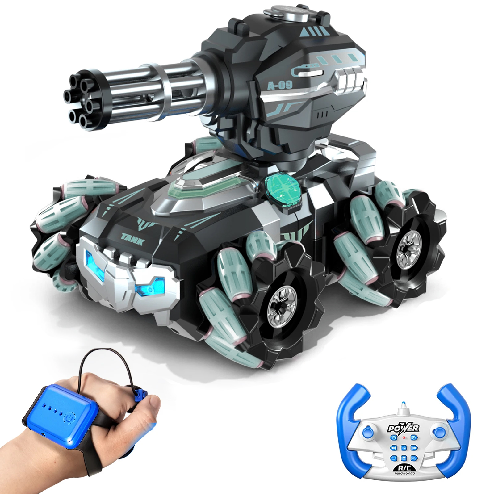 Métodos de control remoto dual: control remoto de 2.4 G y control remoto de sensor de gestos (Manilla), muy sensible, puede ser detectado hasta 10 metros por el sensor de movimiento, aportando una excelente experiencia de funcionamiento, a los adultos y a los niños les va encantar jugar.